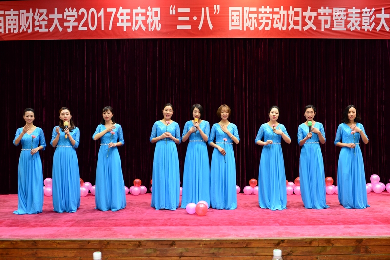 欧兵首先代表学校向全体女教职工致以亲切问候,向受到表彰的先进集体和个人表示诚挚祝贺。他说,学校党政长期以来关心关怀女教职工、女工工作,今后会更进一步加大关爱力度,让西财大家庭更加温暖和幸福。他希望广大女同胞们能够不忘初心、继续前进,撸起袖子加油干,在西财舞台上尽展风采,共谋学校发展,共建西财和谐美好家园。