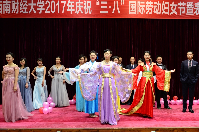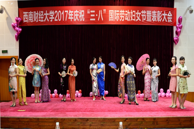 会上,来自各分工会的教职工代表带来了各具特色的精彩节目。教工合唱团的女声小合唱《天之大》表达了对西财母亲的深深爱意,体育学院分工会的运动风采展《跃动青春》倡导了“健康体育、快乐体育、终身体育”的理念,会计学院分工会《霓裳时代秀 会计新风华》展现了中华优秀传统文化服饰和时尚晚装,机关分工会《古韵旗袍 机关新姿》典雅曼妙,引得场下阵阵掌声,财税学院、经贸外语学院分工会的对唱精彩纷呈,感染了在场的每一个人。整个会场洋溢着欢快而热烈的气氛。