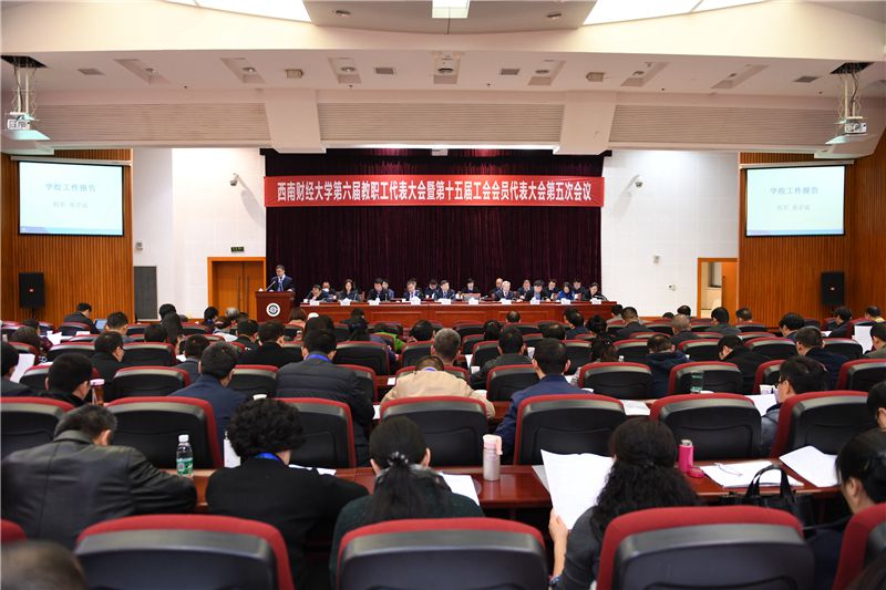 校长张宗益代表学校作题为《坚持社会主义办学方向 扎根中国大地创建一流 加快建设特色鲜明高水平研究型财经大学》的工作报告。报告全面总结了学校2016年在人才培养改革、科研与社会服务能力提升、学科建设、师资队伍建设、对外交流合作、学生管理服务、支撑保障体系建设、和谐校园建设、巡视整改工作和党的建设等方面各项工作取得的显著成绩。报告重点结合习近平总书记在全国高校思想政治工作会议上讲话精神,围绕坚持社会主义办学方向,扎根中国大地建设一流财经大学办学使命,深入阐述充分认识扎根中国大地建设一流大学的重要意义和科学谋划扎根中国大地建设一流财经大学的基本路径。报告强调,建设一流财经大学,一是要坚持立德树人,着力提高人才培养能力;二是要坚守大学之道,着力提高学术创新能力;三是要面向重大需求,着力提高社会服务能力;四是要创新体制机制,着力提高内部治理能力。报告中,张宗益围绕落实全国高校思想政治工作会议精神,着力强化思想政治引领、加强宣传统战工作、落实全面从严治党,切实加强党的建设;全力推动“双一流”建设,着力深化学科体制机制改革、健全一流人才培养机制、强化科研与社会服务能力、加快高水平师资队伍建设、提升国际交流与合作水平、改革创新学生管理服务模式,全面提升办学质量和创新能力;加强保障体系建设,着力完善内部治理结构、优化资源配置机制、加强和谐校园建设,持续激发学校内涵发展的潜力与活力三个方面对2017年重点工作进行了安排部署。