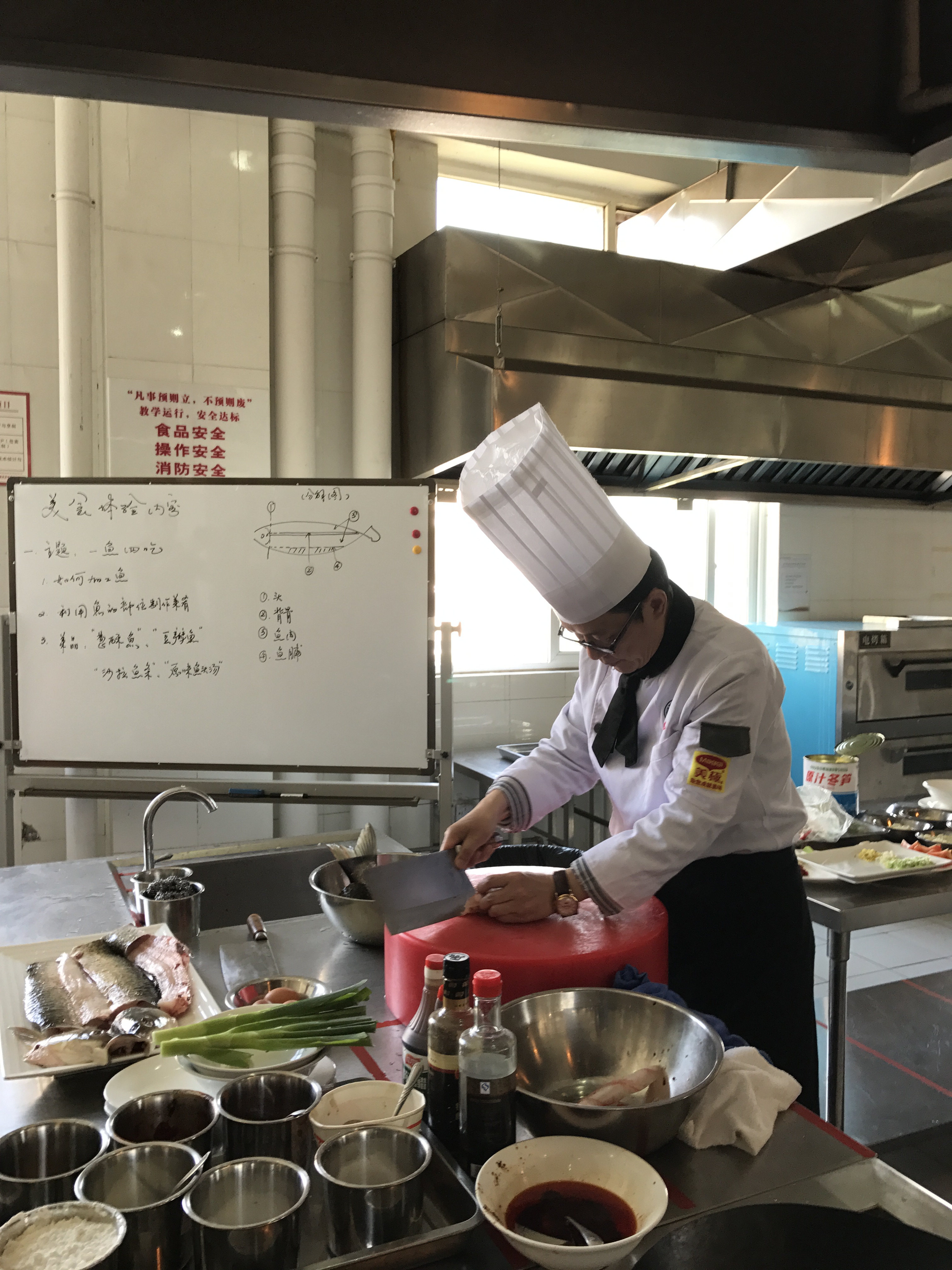 镜头一转,来到第二“现场”----中餐制作, 师傅的“一鱼多做”把鱼的价值用到极致。 “葱酥鱼”,“豆瓣鱼”,“沙拉鱼条”,以及“原味鱼头汤”,色香味俱全,大家都迫不及待地拿着碗筷品尝自己的劳动成果,场面其乐融融。师傅还特别细心的展示了如何将鱼肉和鱼刺分离,以及如何切肉才能保持鱼的新鲜以及营养程度,让大家于学中体验到了做任何事都需要一种匠人精神,不懈的努力与钻研才能把事情做到完美。