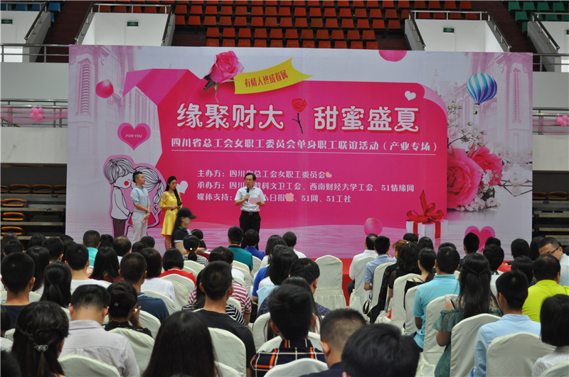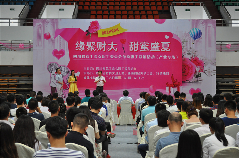 6月16日下午,由四川省总工会女职工委员会及省教科文卫工会主办,我校工会及51情缘网承办的“甜蜜盛夏,缘聚财大”单身职工联谊活动在光华校区体育馆隆重举行,来自成都地区高校和企事业单位的190余位帅哥靓女参加聚会。省总工会副主席李茂林,省教科文卫工会主席李长春,我校党委副书记、纪委书记、工会主席欧兵及成都部分高校、企事业工会同仁出席了本次活动。