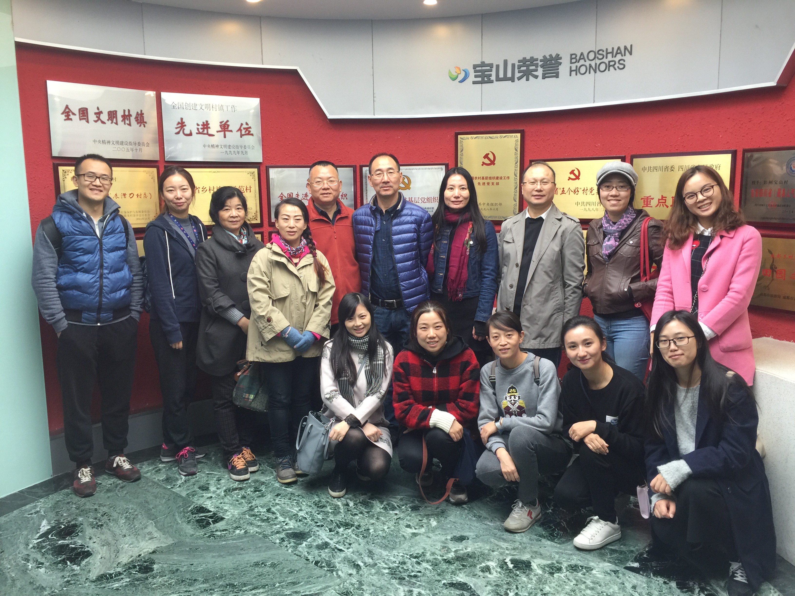 老师们首先来到宝山书画院,这是一个由村委会筹建的图书馆。图书馆整体宏伟大气,古风蔚然,宽敞整洁的书架上摆放着千余册各类书籍。村民每周都会在这里组织读书会,一起来学习、交流,提高文化素养。接下来一行人来到了宝山新农村,看着一幢幢错落有致的小洋楼,漫步在乡间公路上,呼吸着清新的空气,切身感受到了宝山新农村建设的丰硕成果。又来到了宝山文化中心,参观宝山村党性教育图片展。一幅幅充满历史印记的珍贵史料图片展示出在党组织的带领下,经过宝山村民30多年的艰苦创业,实现了由昔日贫穷落后,山高路险到今天美丽富裕,交通便利的巨大转变。接下来的座谈交流活动中,老师们畅谈祖国的美好河山,赞叹农村的新颜新貌,气氛和谐温暖。宝山人民这种艰苦奋斗的精神也让参与专题短期培训的老师们感慨,表达要借鉴学习并践行于日常工作当中。宝山村位于成都西北部,“白水河国家自然保护区”内。该村先后荣获“全国百强村”、“全国文明村”、“四川省小康示范先进村”等光荣称号。长期以来,宝山村坚持走集体致富之路、生态和谐之路。是“山青水又秀,村强民更富,村民住别墅,家家文明户”的社会主义新农村。